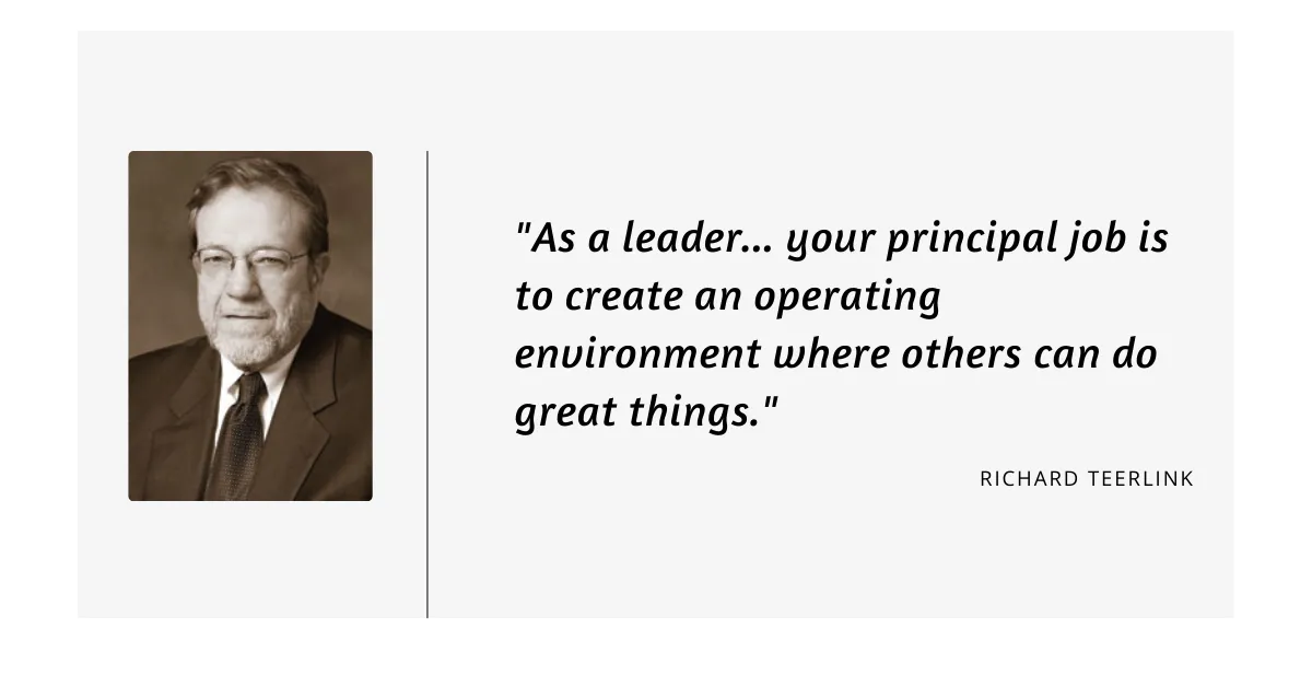 "As a leader... your principal job is to create an operating environment where others can do great things."